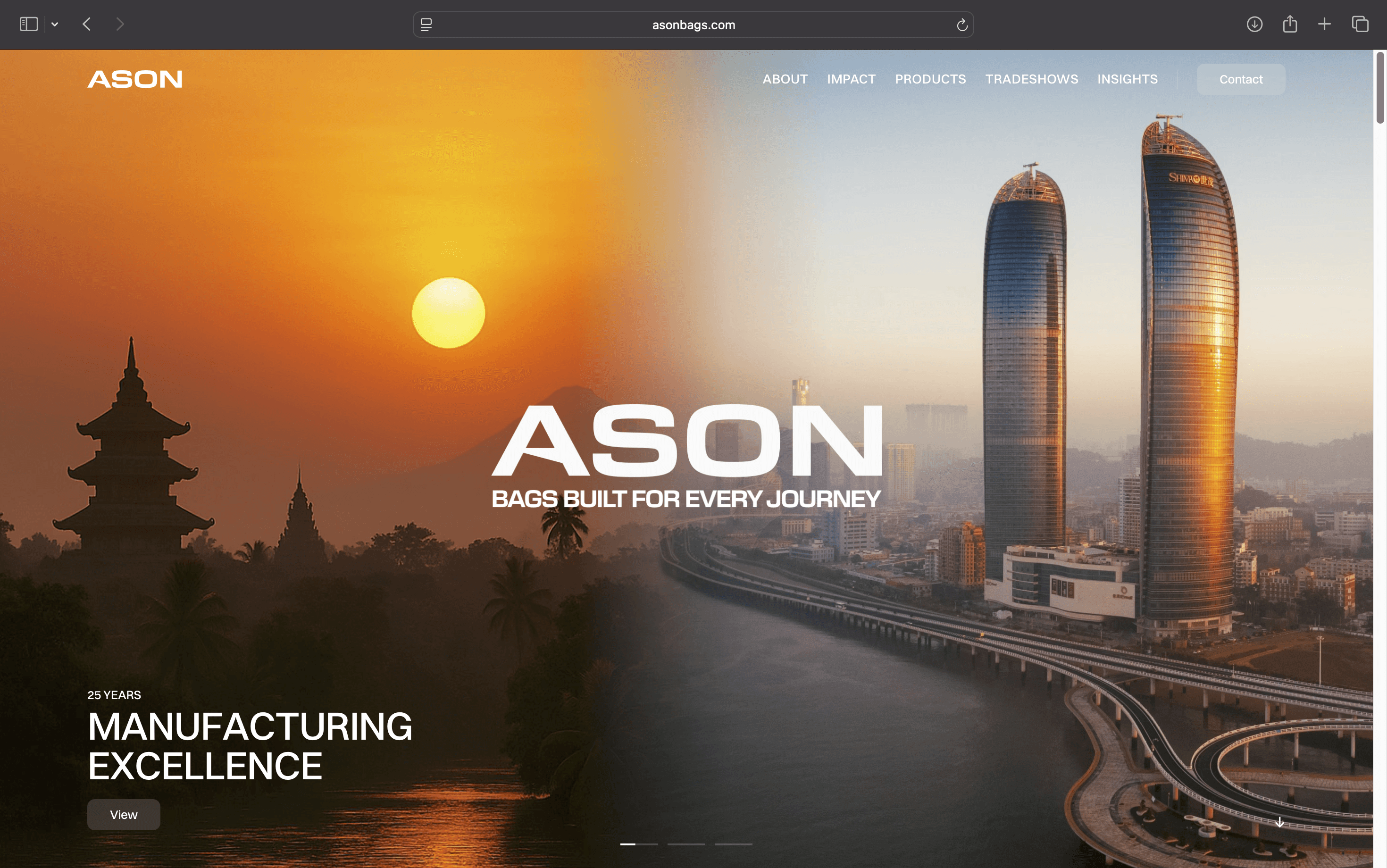 Ason Bags website landing page