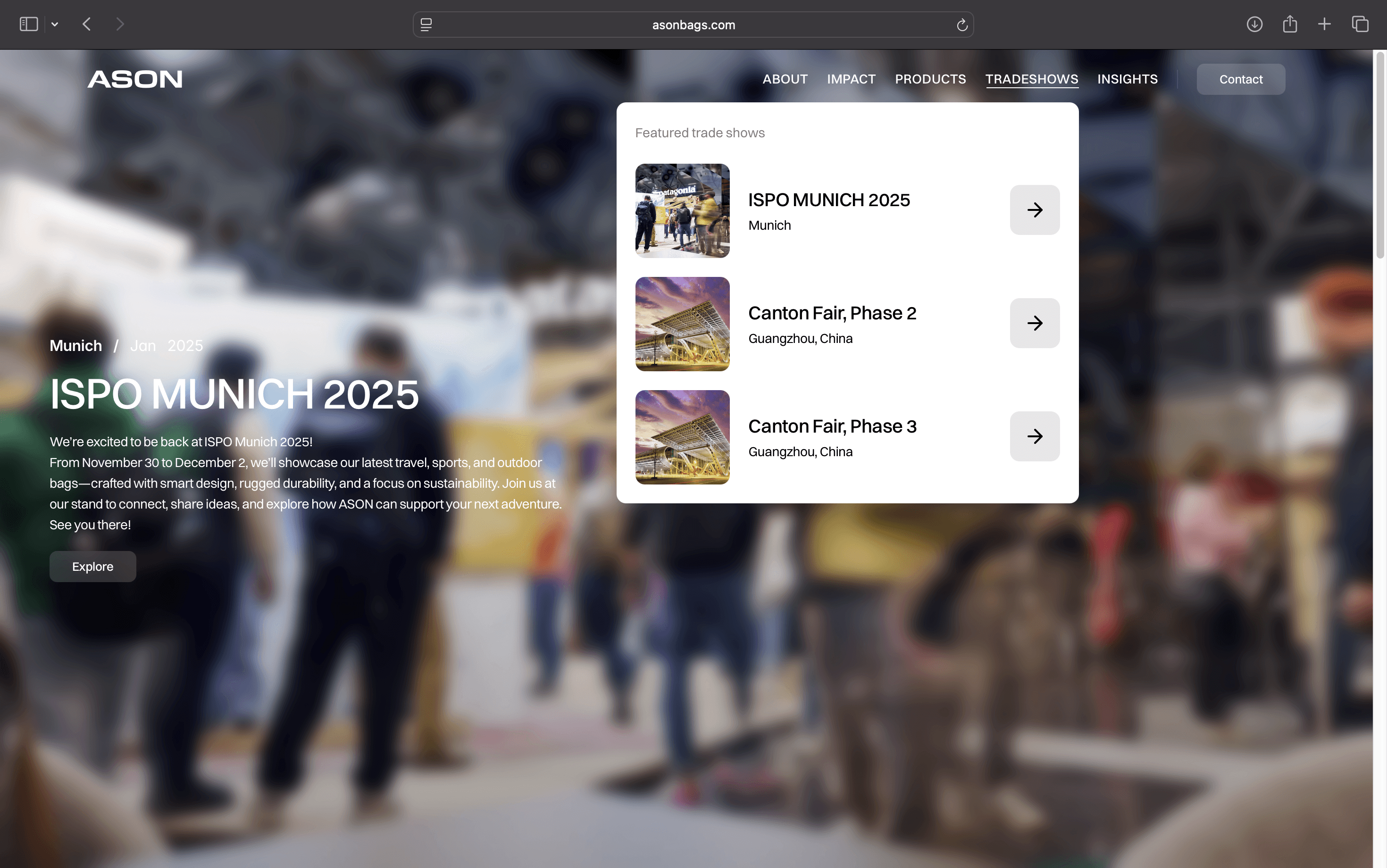 Tradeshows page: https://asonbags.com/tradeshow